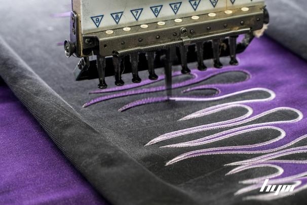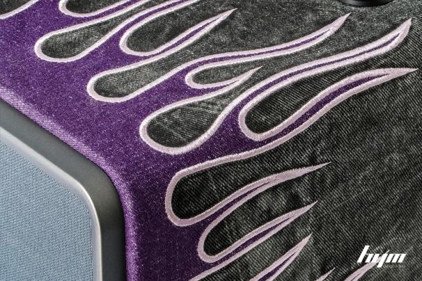 以90年代街头文化与加州汽车文化为灵感,Project V构建"紫色火焰"视觉图腾。通过重磅紫丹宁拼接与不规则解构线条,呈现出内敛而富有张力的视觉效果。